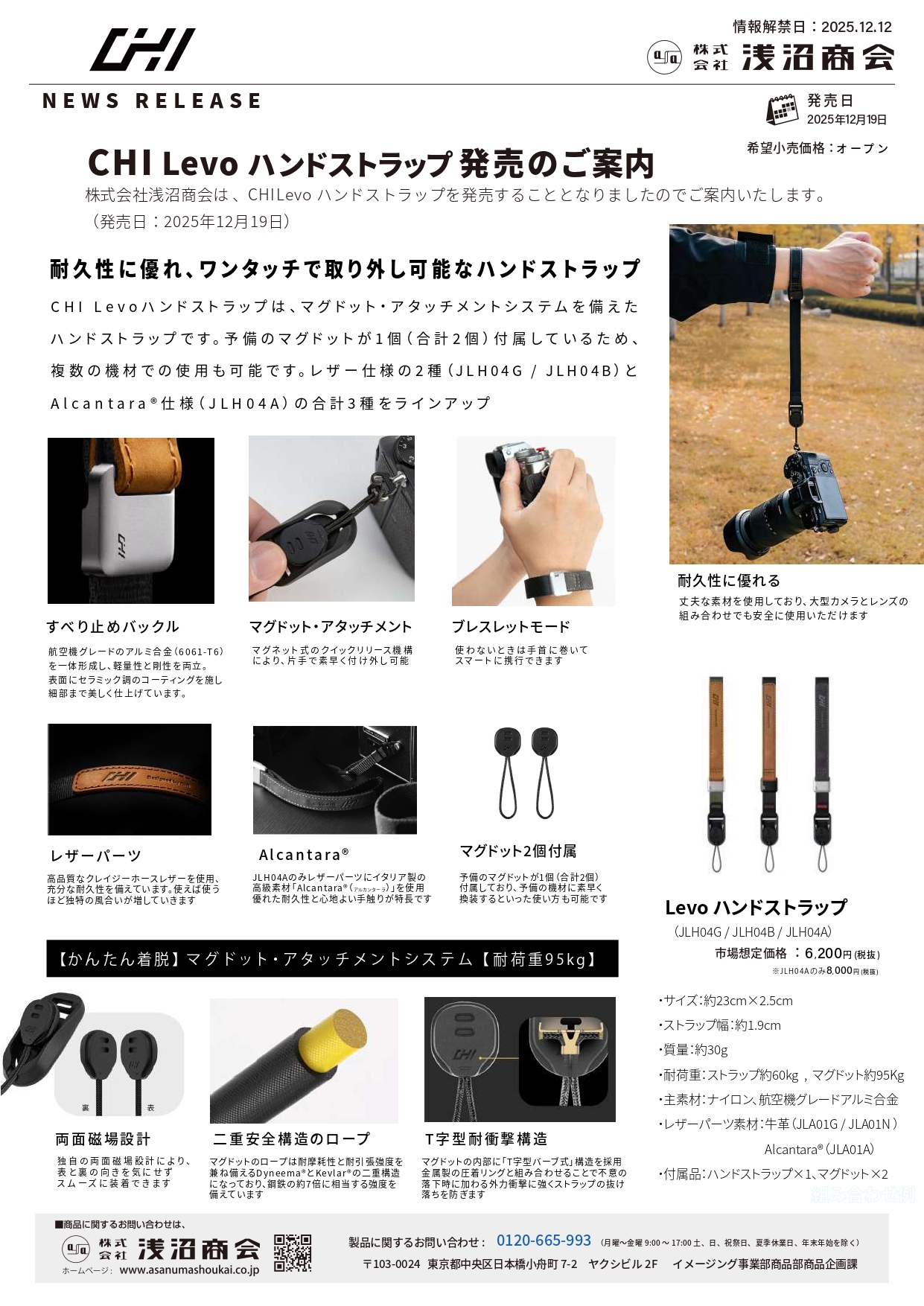 この度 浅沼商会は、CHI Levo ハンドストラップシリーズを発売することとなりましたのでご案内いたします。(発売日:2025年12月19日)