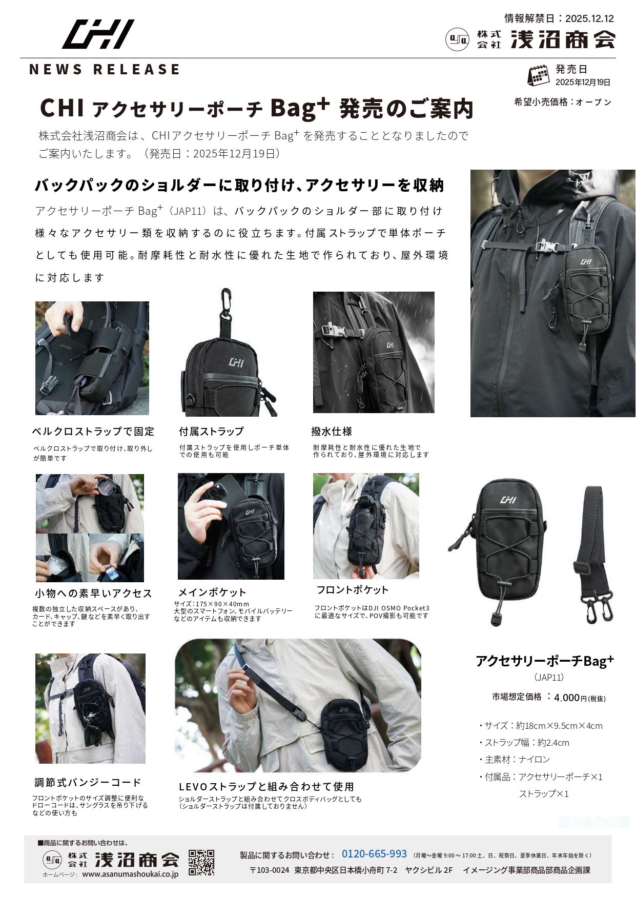この度 浅沼商会は、CHI Bag+アクセサリーポーチを発売することとなりましたのでご案内いたします。(発売日:2025年12月19日)