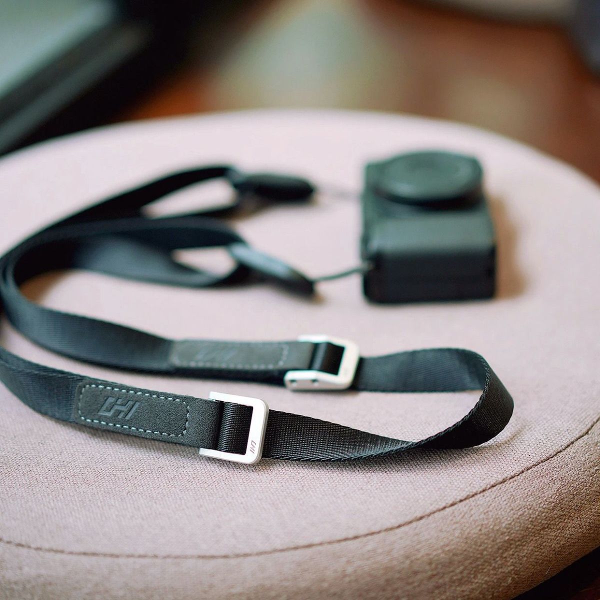 耐久性に優れ、ワンタッチで取り外し可能なカメラストラップ