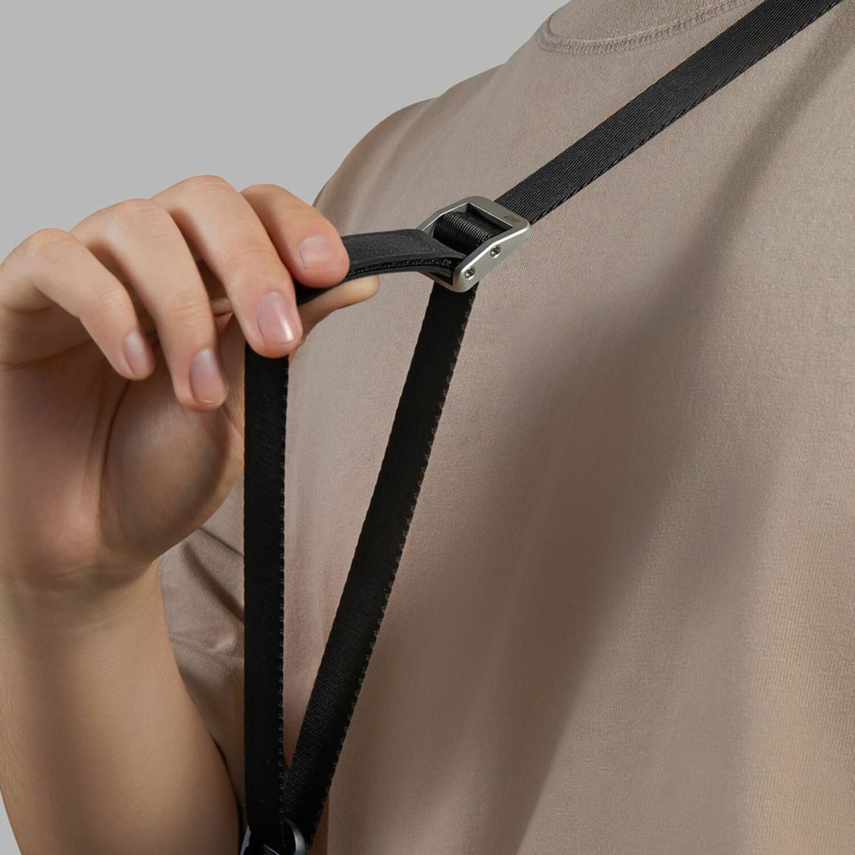 CHI LEVO AIR JLA01Aは、幅19mmのネックストラップです。撮影時にすばやくカメラを構えられるように設計されており、クイックアジャスターを片手で操作してスムーズに長さを調整可能。また、マグネット式のクイックリリース機構(マグドット・アタッチメントシステム)を備えており、ワンタッチでカメラを着脱することができます。一部パーツにイタリア製の高級素材「Alcantara®(アルカンターラ)」を使用。